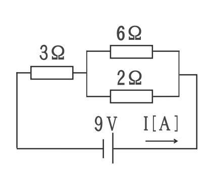 求めたい電流値はオームの法則より、9[V]÷4.5[Ω]=2[A]となります。