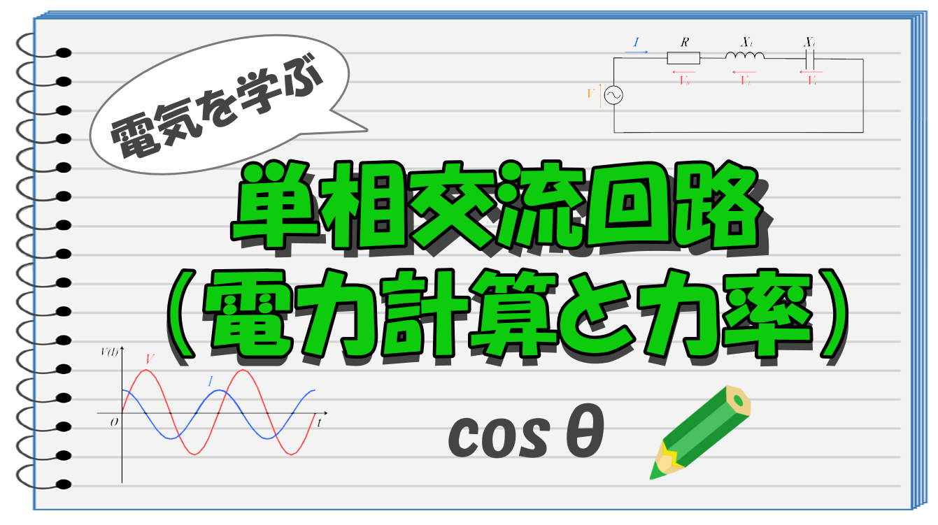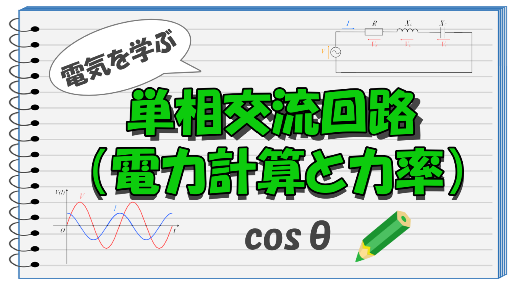 ここでは単相交流回路の力率と電力計算について解説します。