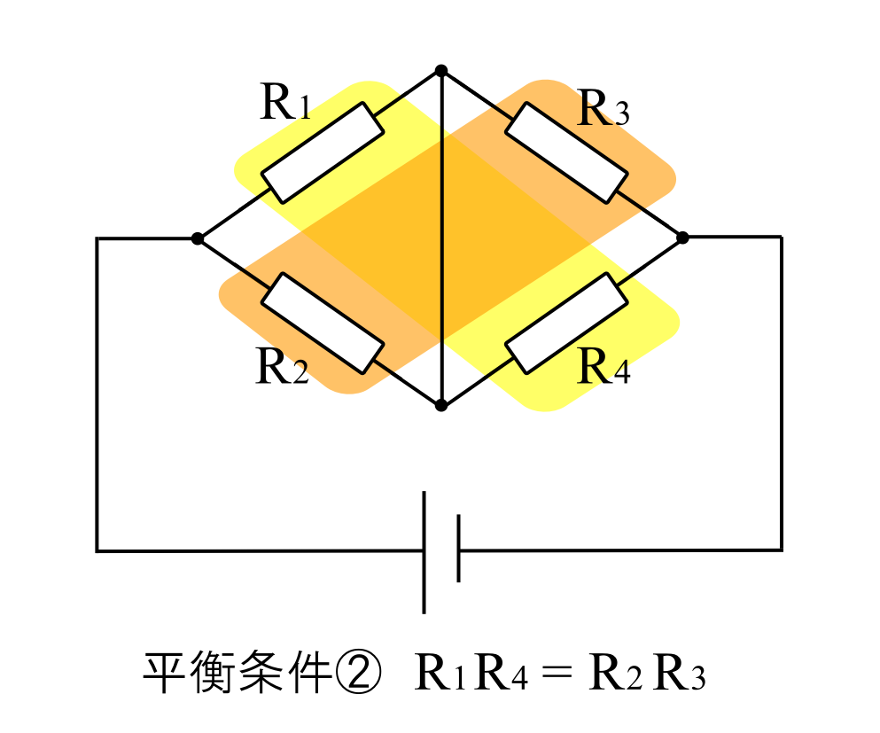 これは式を変更して、\(R_1R_4=R_2R_3\)としても同じです。