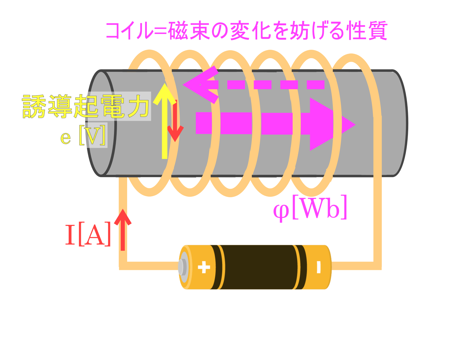 コイル自身がきっかけで起電力が発生するため、「自己」誘導といいます。