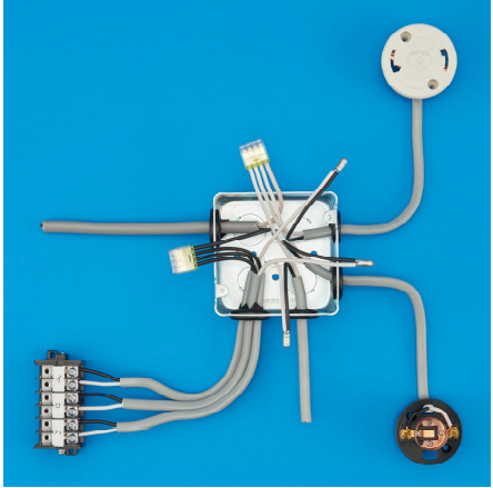 ランプレセプタクルの受金ねじ部の端子には、白色の電線を結線する。